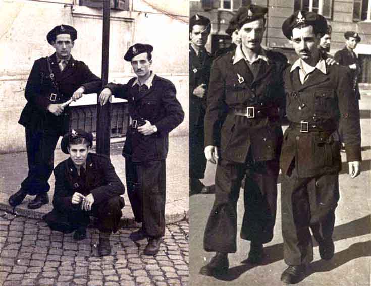 Per molto tempo non avevo dato molto spazio a queste vicende, proprio perché mi mancavano riferimenti precisi sulla faccenda che avrebbe meritato, ed indubbiamente merita, un approfondimento qualora un domani documenti e notizie su questa pagina di storia piuttosto affascinante venissero a galla. Tuttavia, tornai a pensarci e decisi di dedicarvi un breve articolo per merito di due scatti fotografici recentemente scoperti e che, molto probabilmente, ritraggono dei vigili di quel reparto. Innanzitutto, a giudicare dalla poca marzialità e del disordine nelle divise delle persone ritratte, le cui cravatte non erano uniformi ed i baveri delle camicie erano portati sopra il colletto della giubba, ritenni di poter collocare quelle immagini dopo il 1943. Precedentemente, tali pratiche erano infatti punite severamente. Le giacche erano delle modello 1940 con i bottoni di frutto e le fiammette senza fascio littorio usate dal Settembre 1943 in poi. Ma colpiva l’uso del basco in capo alle persone ritratte. Ovviamente non si trattava di militi del Battaglione Santa Barbara, sciolto molti mesi prima, e, dato l’abbigliamento, nemmeno di personale del servizio portuale. Eppure il basco suggeriva un impiego in mare, proprio come i casi già citati. Ad eccezione dei paracadutisti, l’uso del basco in Italia era prerogativa dei reparti “da sbarco”, d’impiego “anfibio” o, comunque, marittimo. L’aspetto di quegli uomini era particolare e suggeriva che la foto fosse stata scattata molto avanti rispetto all’inizio del conflitto. I volti, poi,